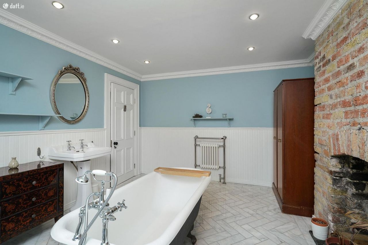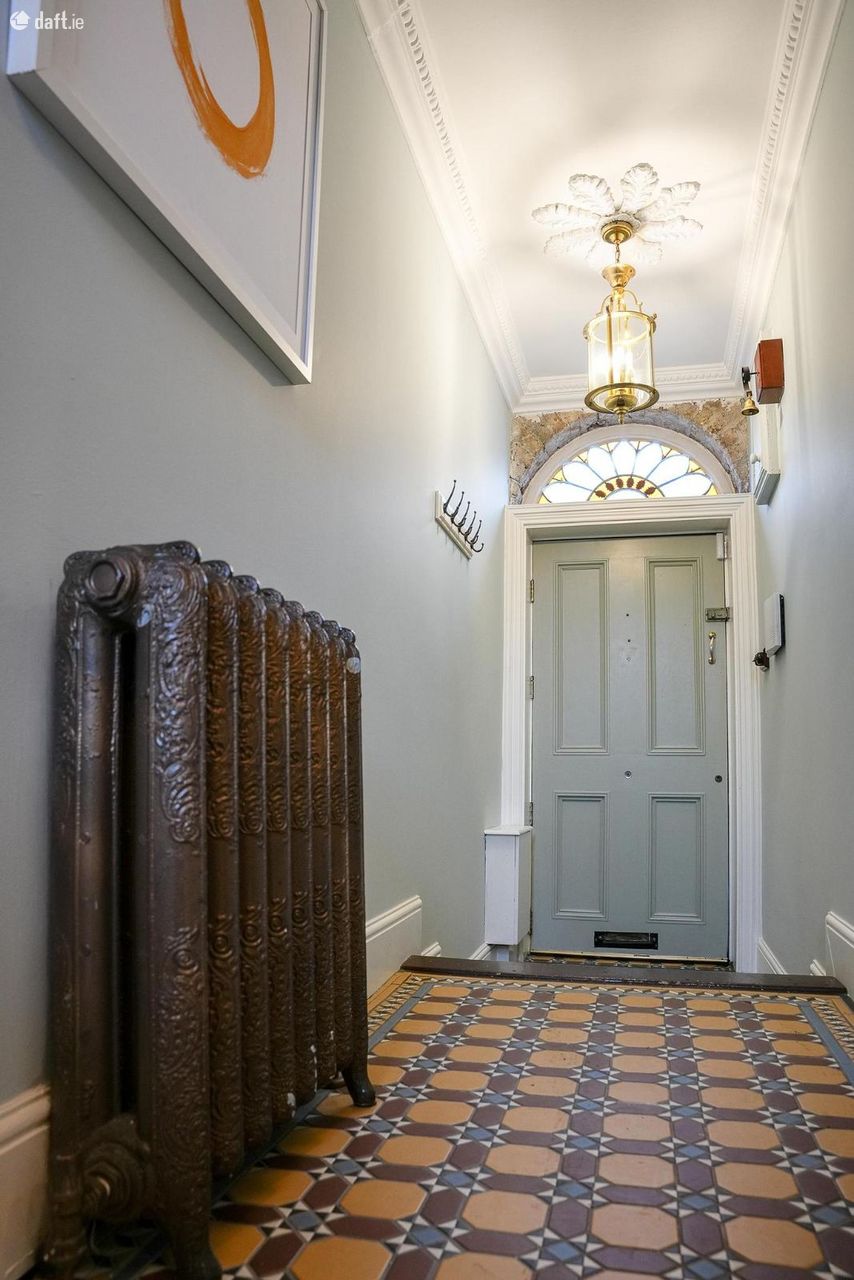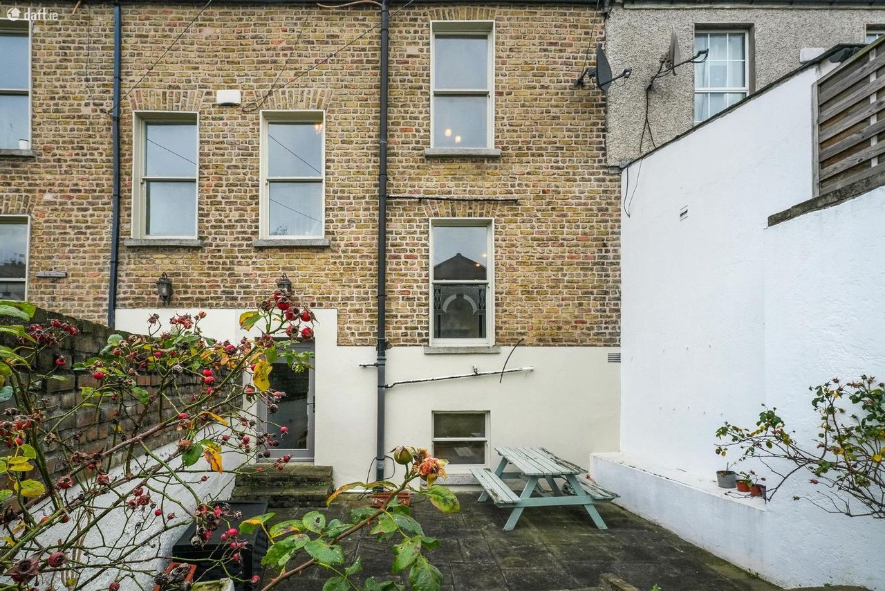 Originally built in the 1820’s, the house was refurbished in recent years while retaining many of its original features including ceiling cornicing, ornate fireplaces, sash windows and timber shutters. The South facing rear garden offers a private and tranquil space in the heart of Dublin city. Comprising on the entrance level of a light filled hallway , living room with feature brick fireplace and a large bathroom with a partially stain glassed privacy window and feature free standing bath. Upstairs are two large double bedrooms, both with modern custom built wardrobes and retained period features. On the basement level is a 3rd double bedroom and the kitchen with flagstone flooring and an AGA range cooker. To the rear there is a private, low maintenance, south facing garden with patio and lawn.