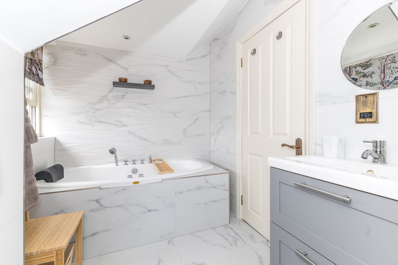 Bespoke are delighted to present this fabulous dormer bungalow in Monkstown, one of Dublin’s most sought after addresses. Set in a quiet residential cul de sac the property comprises of an entrance hall with guest WC leading to the spacious and bright kitchen/dining space. The stylishly fitted kitchen comes fully equipped with range cooker and separate utility room. Living room complete with gas fireplace. Folding doors from the dining area lead to the rear garden complete with pond with downward steam, mature plants and plenty of seating to take in the sun. Upstairs is the Master bedroom with en suite. Fully tiled main bathroom with jacuzzi bath and separate walk in shower. 2nd double bed and 3rd bedroom with additional en suite. This home also benefits from gas fired central heating and off street parking. Viewings are highly recommended to truly appreciate this stylish home.