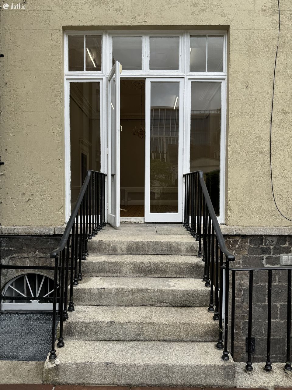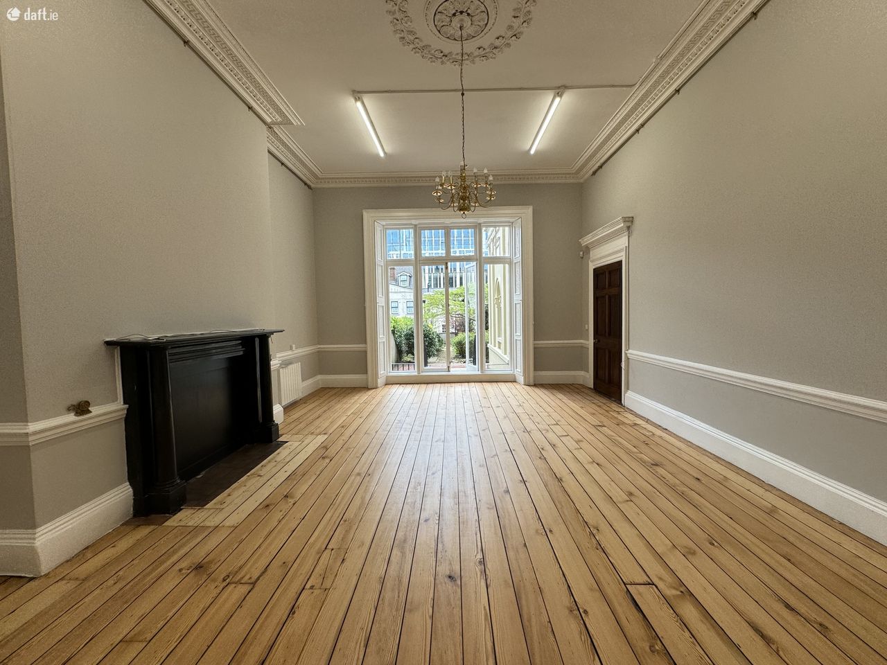 Accessed through the granite surrounded hall door, the front office or reception room has high ceilings with original floorboards and period details. The very large rear hall floor office has French doors to patio garden and original fire place.