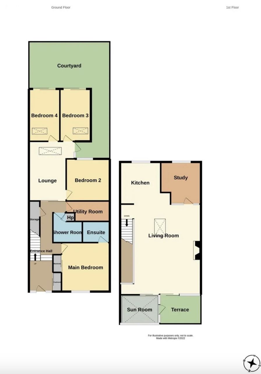 Internally, the house is cleverly designed with the living spaces on the upper floor and the ground level holding all 4 bedrooms (1 en suite), a family bathroom, utility room and lounge area. Having just been redecorated before coming to market and new carpets fitted, the house is in pristine condition. The 2015 rear extension holds two of the bedrooms which have direct access to the rear garden. Built in wardrobes in each room provide a huge amount of storage and a clever sliding door means the lounge can be disconnected from the rest of the house providing a secluded seating area.