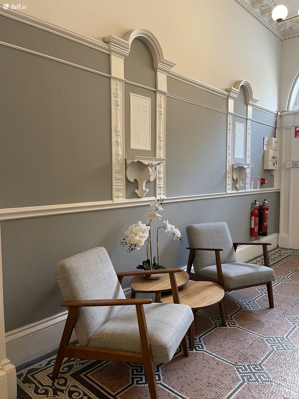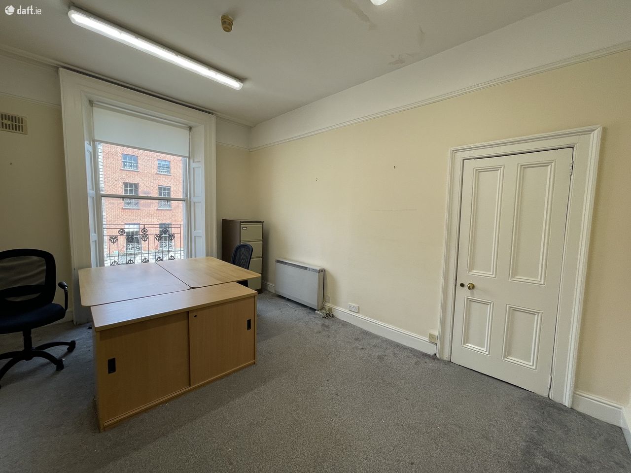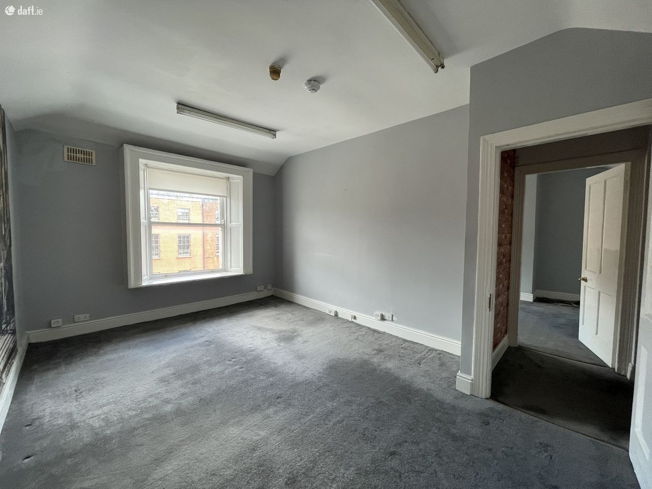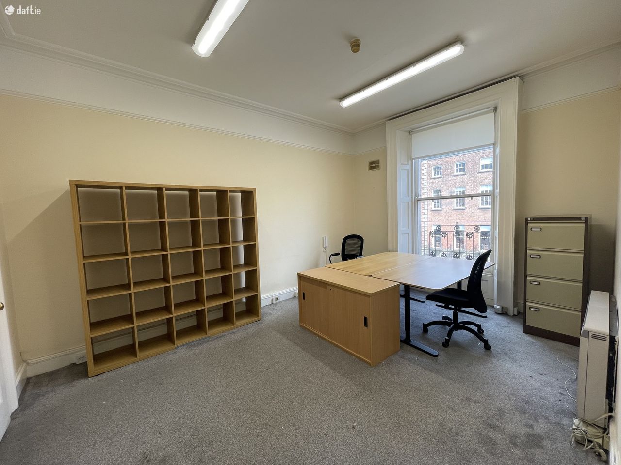 Top two floors of Georgian office in the heart of the Dublin’s central business district comprising two private offices with large boardroom or shared office space on second floor including server space and storeroom. Top floor is split into 4/5 small offices. There is a shared kitchen below along with restrooms.