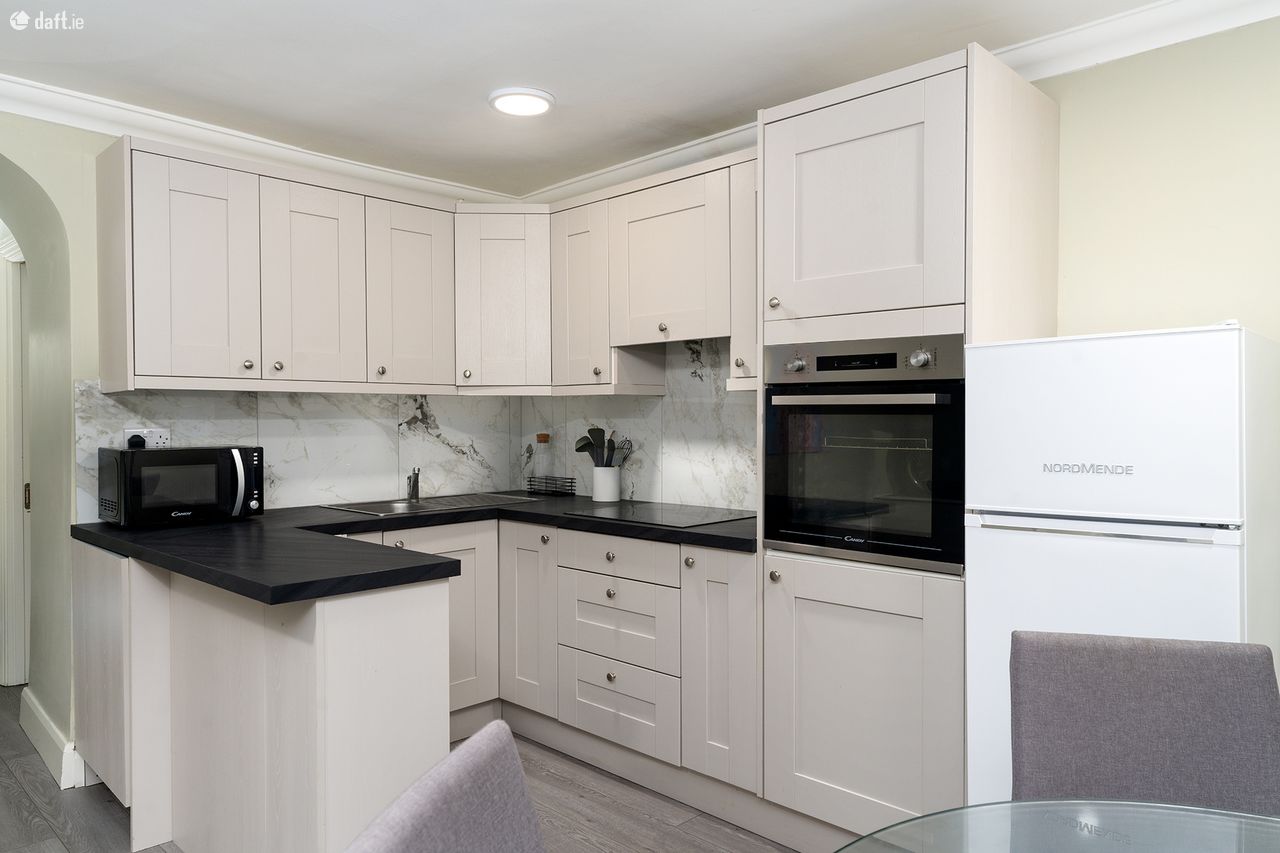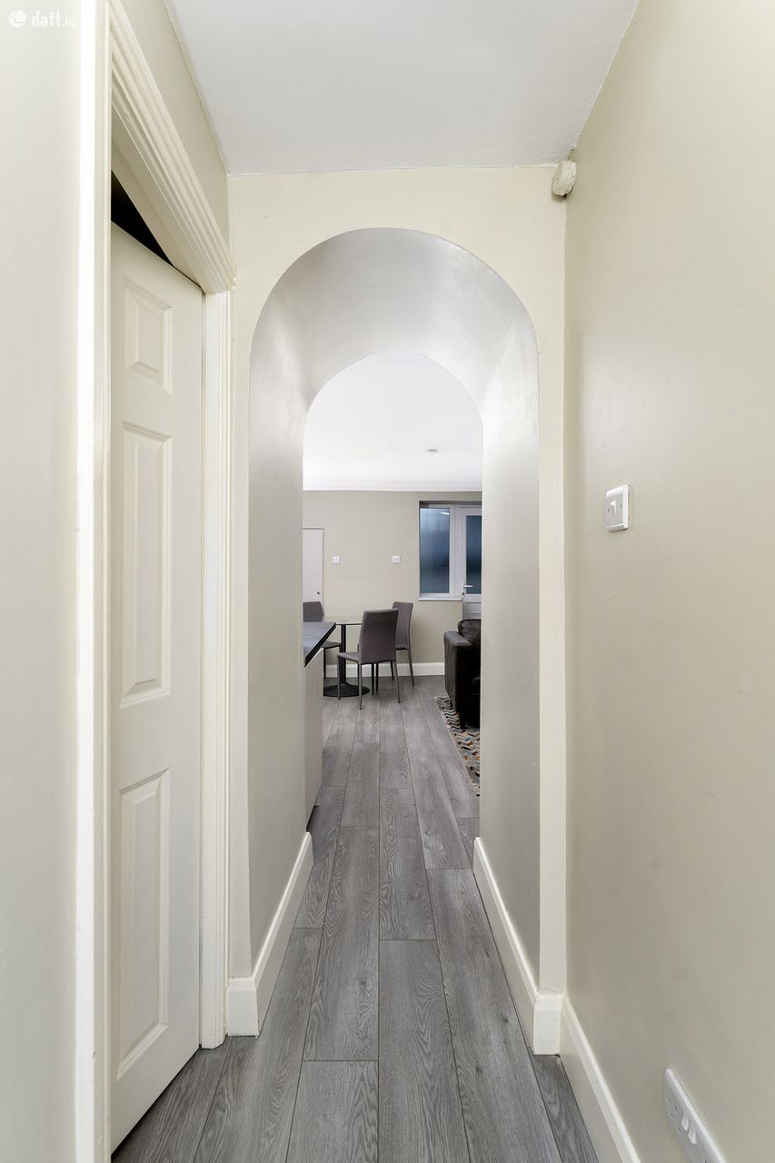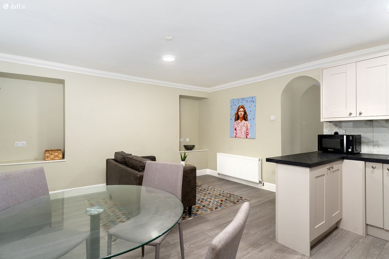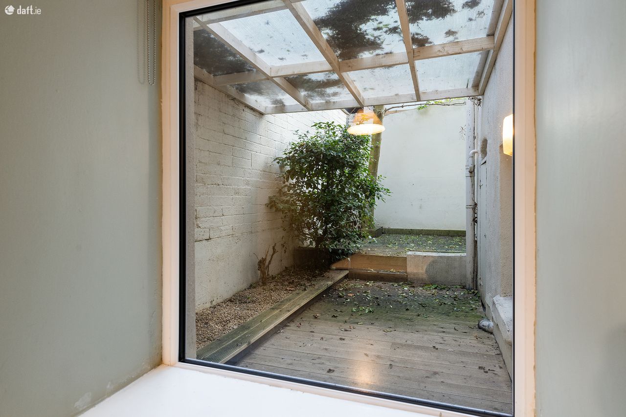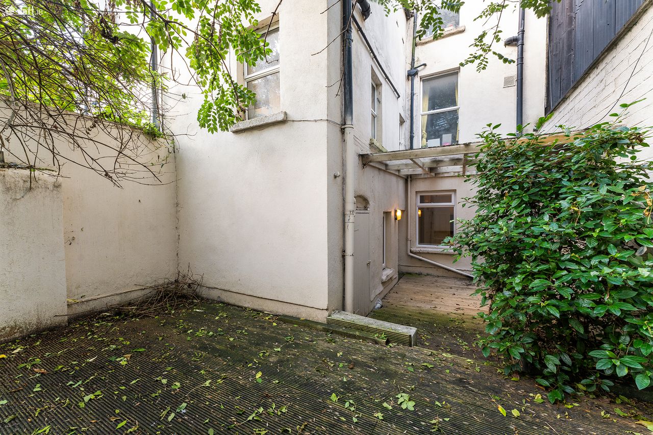 The apartment has recently been refurbished with new flooring, a newly fitted custom kitchen and modern bathroom. New double glazed windows throughout and an upgraded heating system have improved the energy efficiency for this comfortable property. Entering through the hall door, you are met with a bright open plan living/dining space and a modern kitchen. Integrated appliances and a clean finish to the cabinets give the room a spacious feel. A clever storage room under the granite steps of the above property, houses the boiler and makes use of the space off the kitchen. Down the hallway is a study and a double bedroom which overlooks the rear garden, providing a framed view and a huge amount of light. The rear of the apartment houses the modern, fully tiled bathroom with bath and shower as well as rear access to the garden which is a massive feature of this property. Fully decked and partly sheltered this a multi use garden which provides a tranquil outdoor space in the heart of the city. Not overlooked by neighbours, it is a unique space in this location.