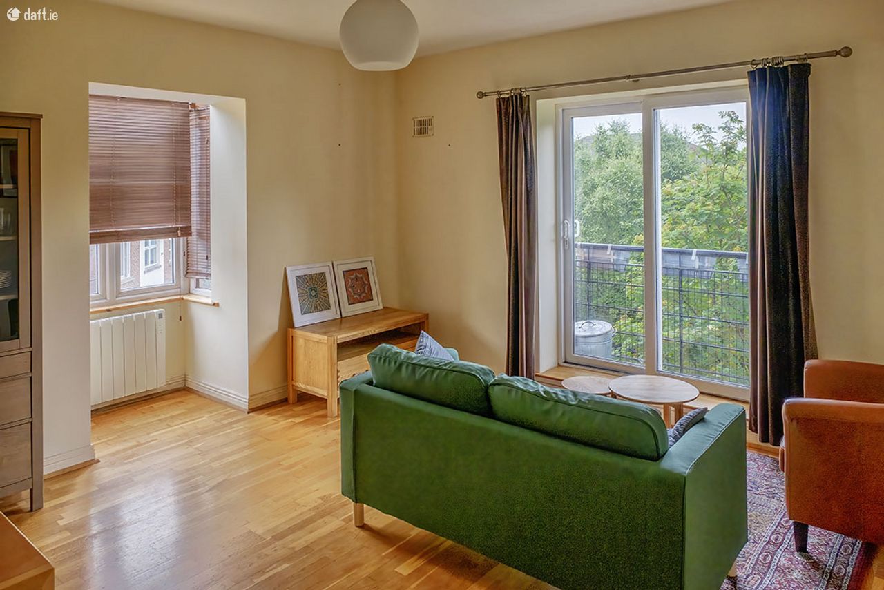 Bespoke Estate Agents are delighted to present this 2nd floor 2 bed, 1 bath apartment to let. Located in the private gated development off Irwin Street in Kilmainham, this is a tranquil setting overlooking landscaped communal gardens and the river Camac. The apartment comprises of an entrance hallway with storage, 2 double bedrooms, a modern bathroom, an open living and dining area with juliet balcony and a fully fitted kitchen with all mod cons. New electric heating has been installed as well as upgraded appliances and new furnishings. This is a dual aspect apartment that is light filled and very spacious. Designated parking is included.