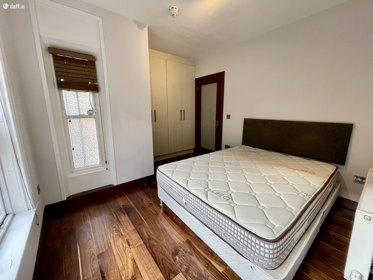 Internally the apartment consists of an open hallway with storage leading to a main bathroom, two double bedrooms overlooking the side patio, a fully fitted modern kitchen and a newly furnished open plan living/dining room. Accessible through the double doors is the large rear garden with high walls on all sides giving a huge amount of privacy and shelter. The apartment has has its hardwood floors sanded and lacquered, and has been freshly painted throughout. Intercom access for the front door of the building, an internal house alarm and heating controlled through a phone app are some of the features of the apartment. Directly outside the main door is Merrion Square, a Georgian Park with a huge character and history with weekly food markets and artists hanging their paintings on the railings every Sundays.