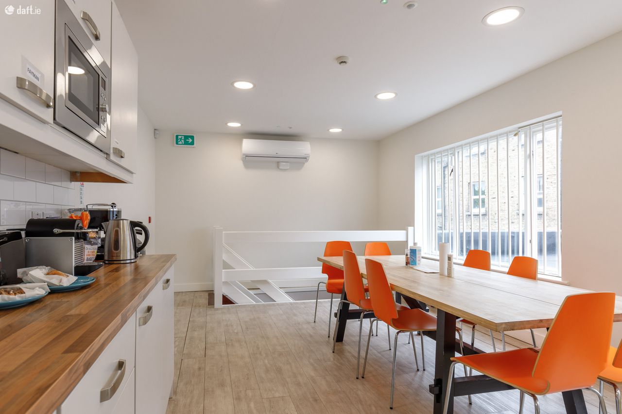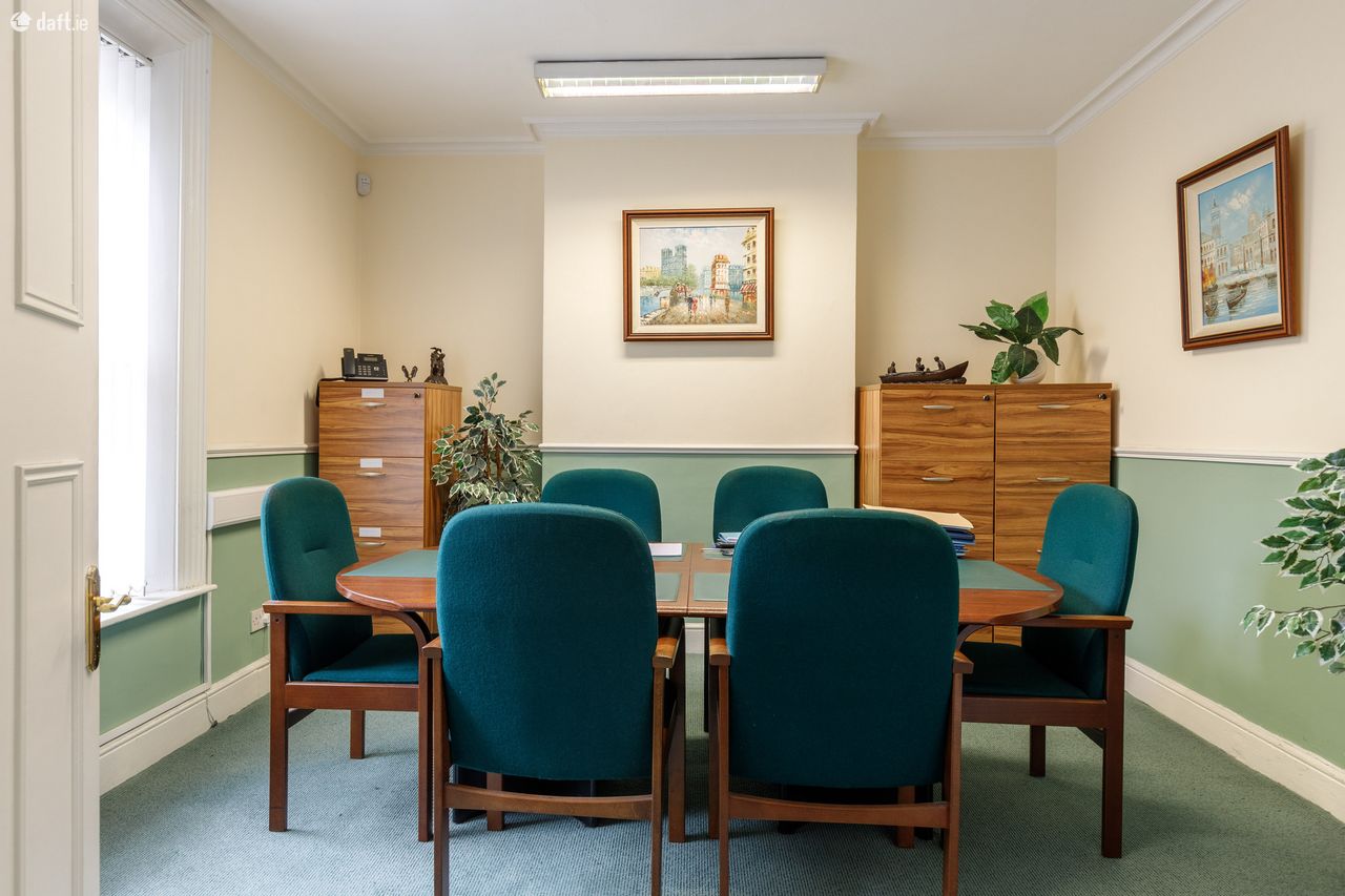 The ground floor accommodation is accessible through the main entrance fronting Marino Mart into an entrance waiting area. Access into the primary office space is coded and secure, with well lit, open planned shared offices as well as private shared meeting rooms. This space has been modernised with suspended ceilings, air conditioning system, LED light panels, commercial grade carpets, glass partition walls and a feature skylight. To the rear, a 1st floor extension contains a modern shared kitchen and bathrooms. Storage space has been conveniently fitted throughout.