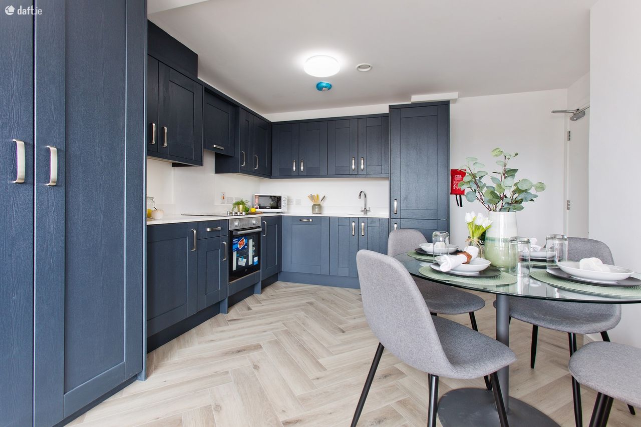 Furnished to the highest standard, the accommodation comprises an entrance hall with two spacious presses leading to the open plan kitchen & living room with herringbone wood floor and high quality fully fitted kitchen. Stylish tiled bathroom with heated towel rail and built in linen store. Bedroom with built in wardrobe and door to private deck. Private deck area with panoramic views over the city.