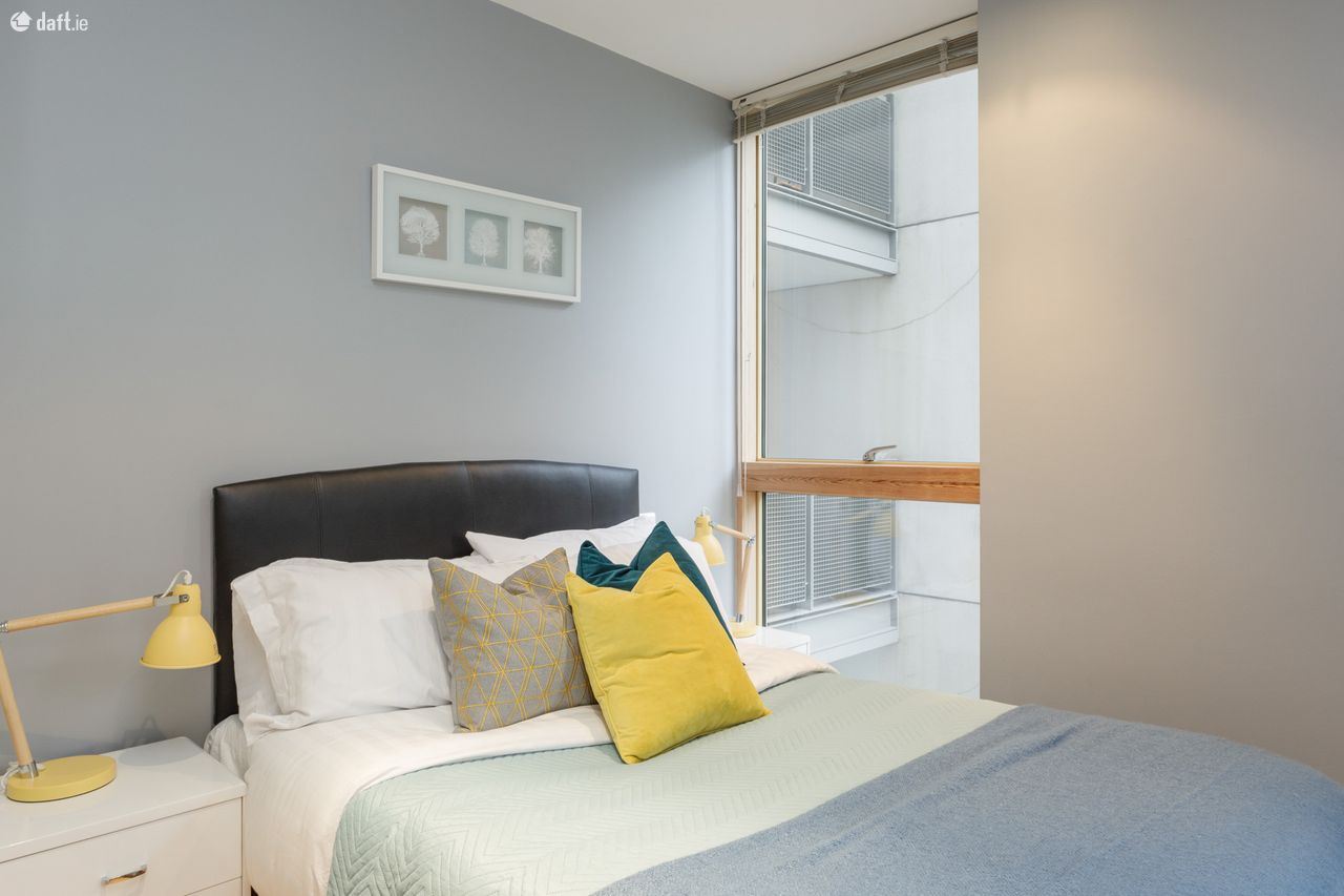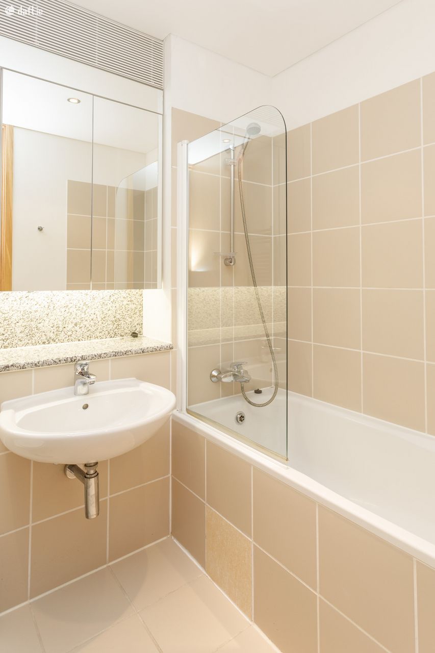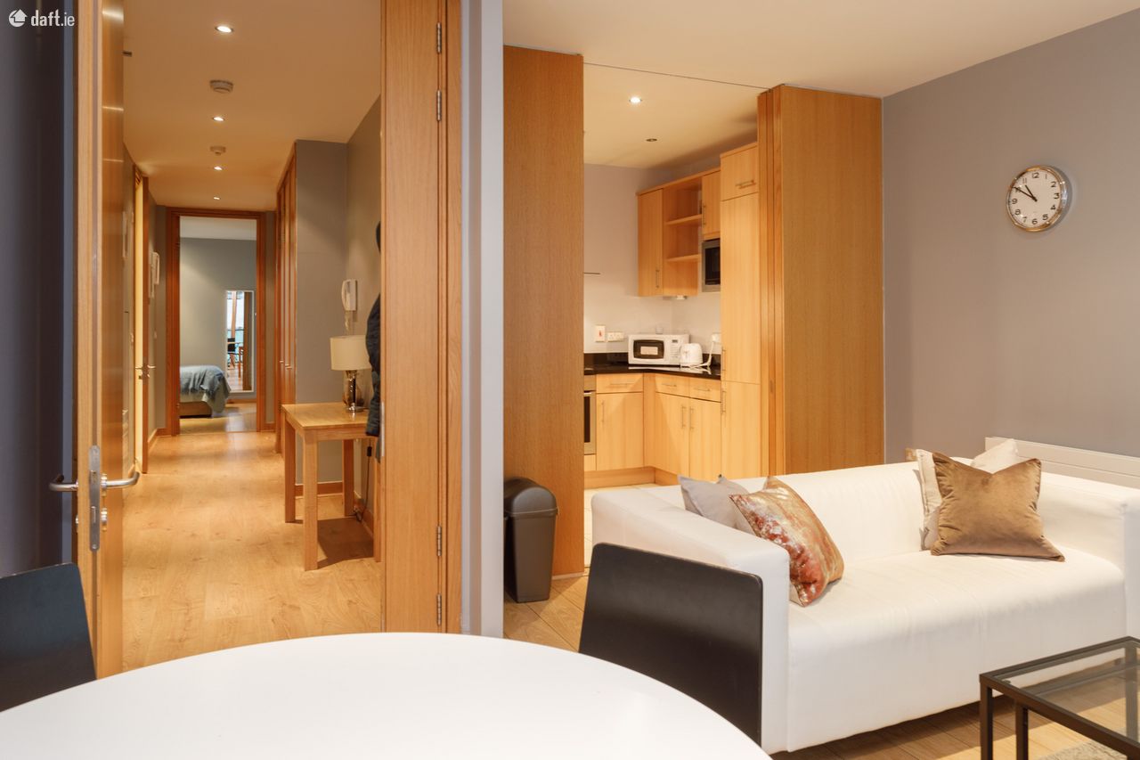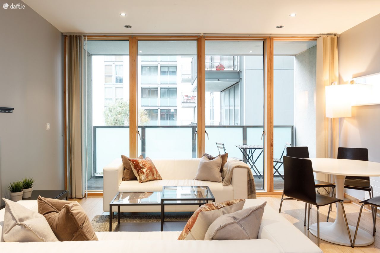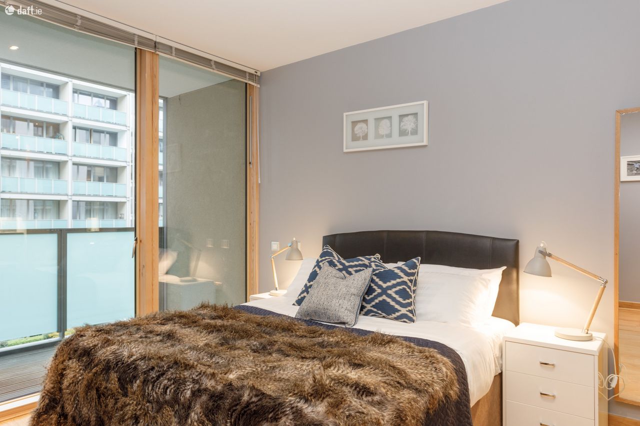 Bespoke Estate Agents are delighted to bring this stunning 2 bed, 2 bath second floor apartment kirkpatrick House to the market. This bright and spacious apartment benefits from dual-aspect floor to ceiling windows which overlook landscaped courtyards on either side. The property is finished to a very high standard and features high quality wooden floors, recessed lighting and top of the range Neff kitchen appliances. Spencer Dock is superbly located within quick and easy walk to a host of attractive amenities such as the 3 Arena, Google, Facebook and LinkedIn, while the City Centre is a short stroll away. There is an onsite concierge and 24-hour security service providing luxurious and secure living. The property also features a secure underground parking space. The area is served by an extensive transport network which includes the Spencer Dock LUAS line, the Docklands Station for DART and inter-city trains and Dublin Bus services are nearby. The property has an excellent layout with sleeping quarters at one end of the apartment and living quarters to the far end. The property briefly comprises: large entrance hall with storage room, light filled living room with terrace off overlooking the landscaped courtyard, modern kitchen, 2 double bedrooms with built in wardrobes (Master ensuite), main bathroom.
