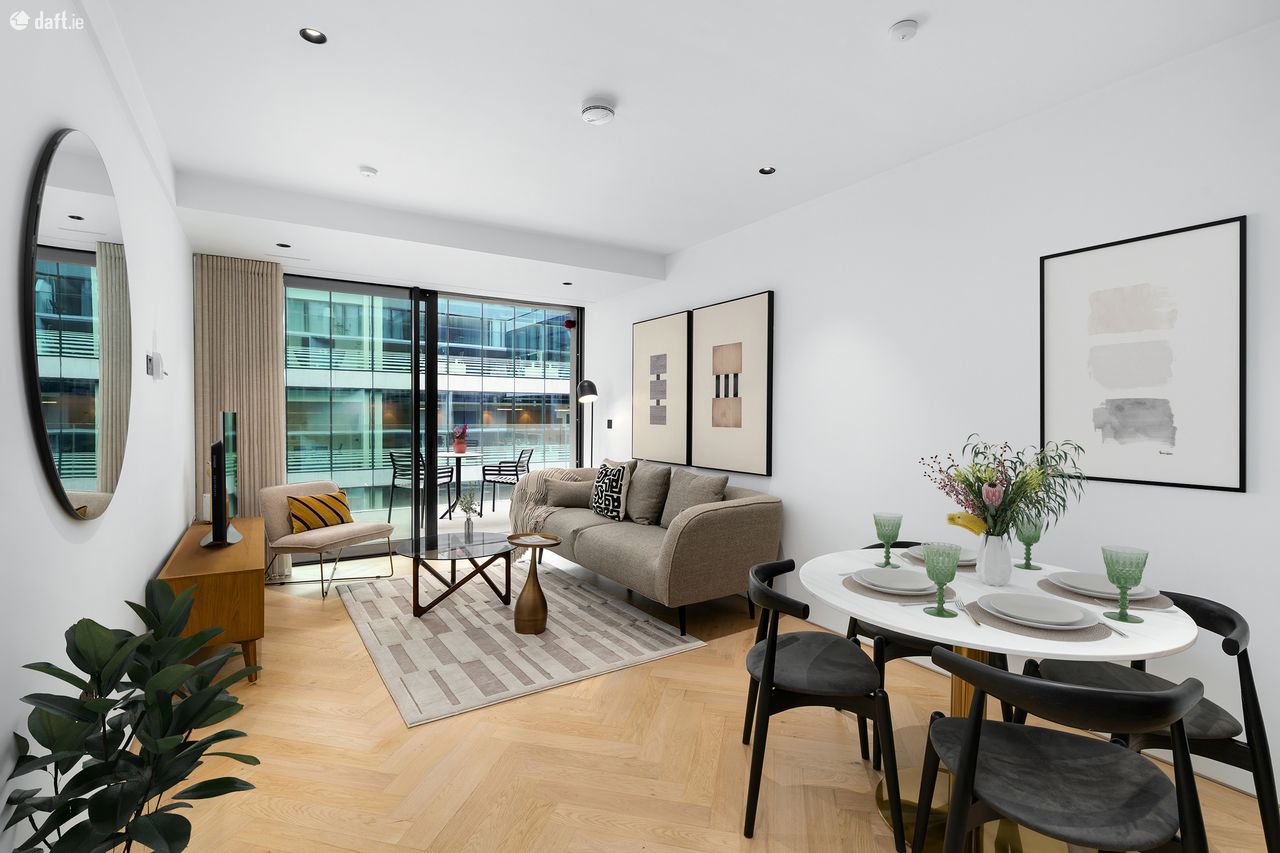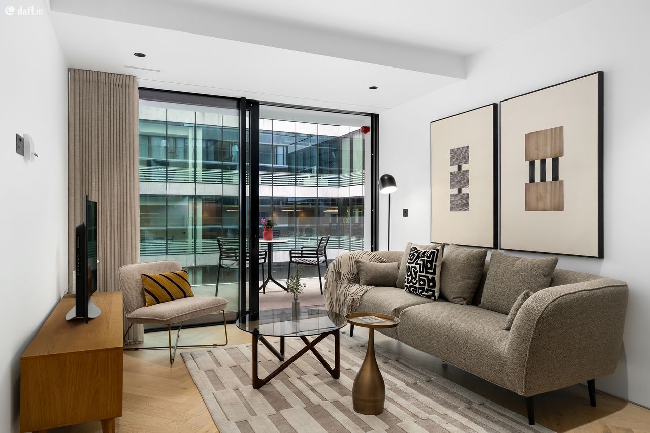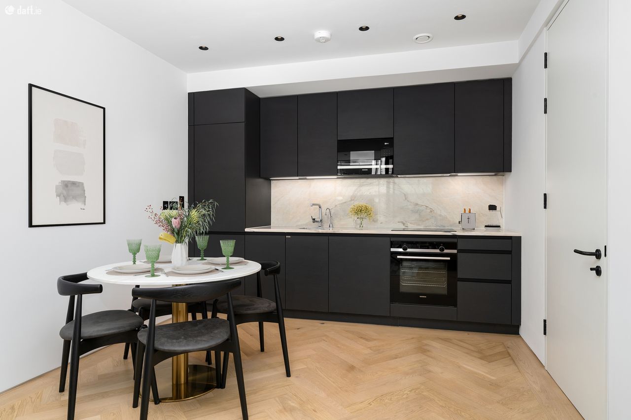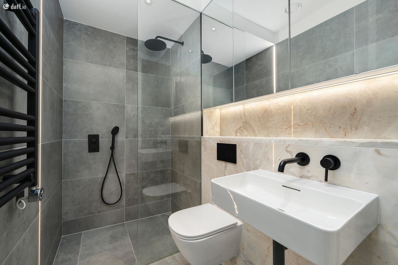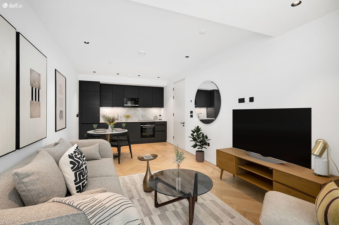 Bespoke are delighted to present the first letting of this luxury A rated apartment to the market. The newly completed No. 55 Lad Lane, designed by Dublin based architecture practice ODDA is built to the highest possible standard and benefits from rooftop garden. Nestled between Baggot Street and Leeson Street, these slickly designed apartments are within easy walking distance of the city centre & Dublin’s Docklands. The apartment comes with solid timber floors, underfloor heating and recessed lighting throughout. The charcoal kitchen by award winning German brand Allmilmo complete with Arabescato marble worktops and fully integrated Siemens appliances. Utility room with separate washing machine and dryer also provides additional storage. The bright living room with floor to ceiling window leads to the large private balcony. The bedroom with wardrobes by Italian brand Zalf benefits from floor to ceiling windows for an abundance of natural light. Contemporary filly tiled kitchen complete with walk in rainfall shower, heated towel rail and generous cabinet storage space behind mirrored doors. Built and furnished to the highest possible contemporary standard, this highly stylish apartment is a rare find in Dublin’s rental market and well worth a viewing.