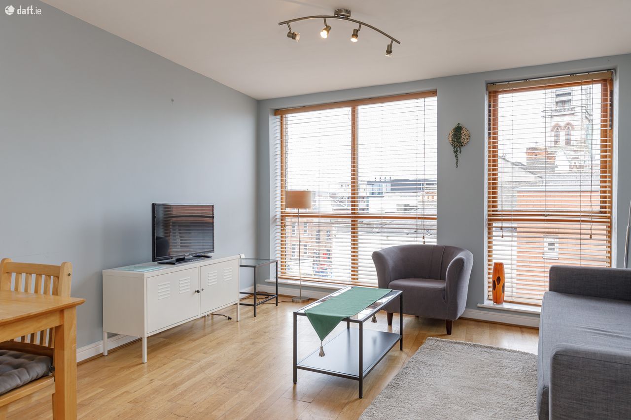Bespoke are delighted to offer this fantastic 4th floor apartment in bank house. Bank house is a well managed block superbly located close to a host of attractive amenities including cafes, restaurants, supermarkets, some of Dublins best shopping, cinemas, theatres such as the Olympia, museums and much more. Grafton Street is less than 900m walk, Baggot Street is approx 1.2km walk, Dame Street is less than 950m walk, Trinity College is less than 1.45km walk and Google is approx 2.8km walk. The apartment is on the 4th floor with excellent views of Dublin City. The property comprises: entrance hall, living room large floor to ceiling windows, large kitchen with all the mod cons inc dishwasher, large master ensuite bedroom with direct access to a balcony with excellent views, single bedroom with built in wardrobes and access to the balcony, bathroom with bath and shower.
