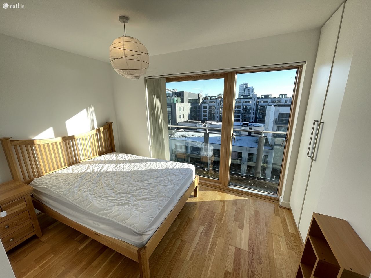 Bespoke are delighted to present this stunning top floor duel aspect apartment right nearby the Bord Gais Energy Theatre. The apartment comprises of an entrance hall with plenty of storage leading to a bright living room with floor to ceiling windows leading to the balcony with spectacular views over Dublin. The semi separate kitchen comes complete with all built in appliances. Master bedroom with en suite and built in wardrobes and 2nd bedroom both with another balcony. Fully tiled main bathroom with full bath.
