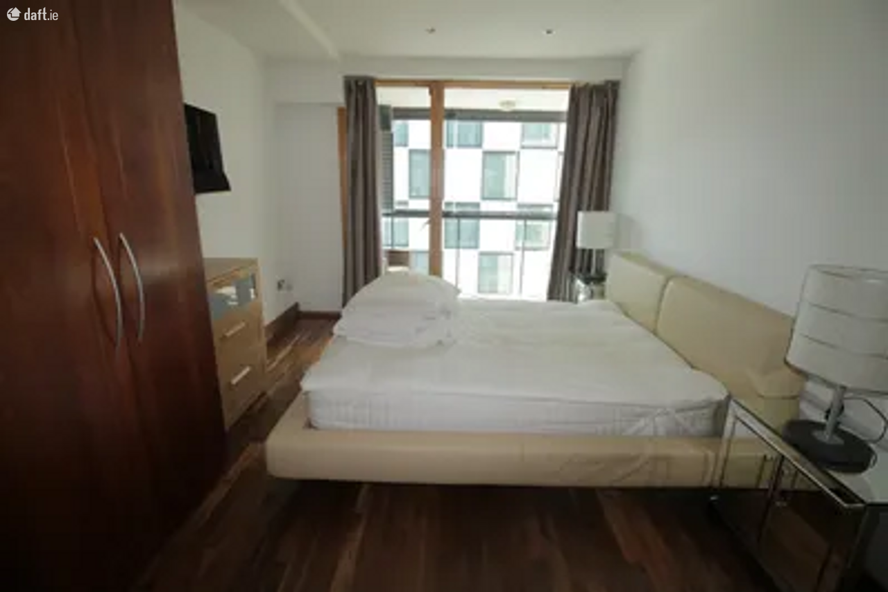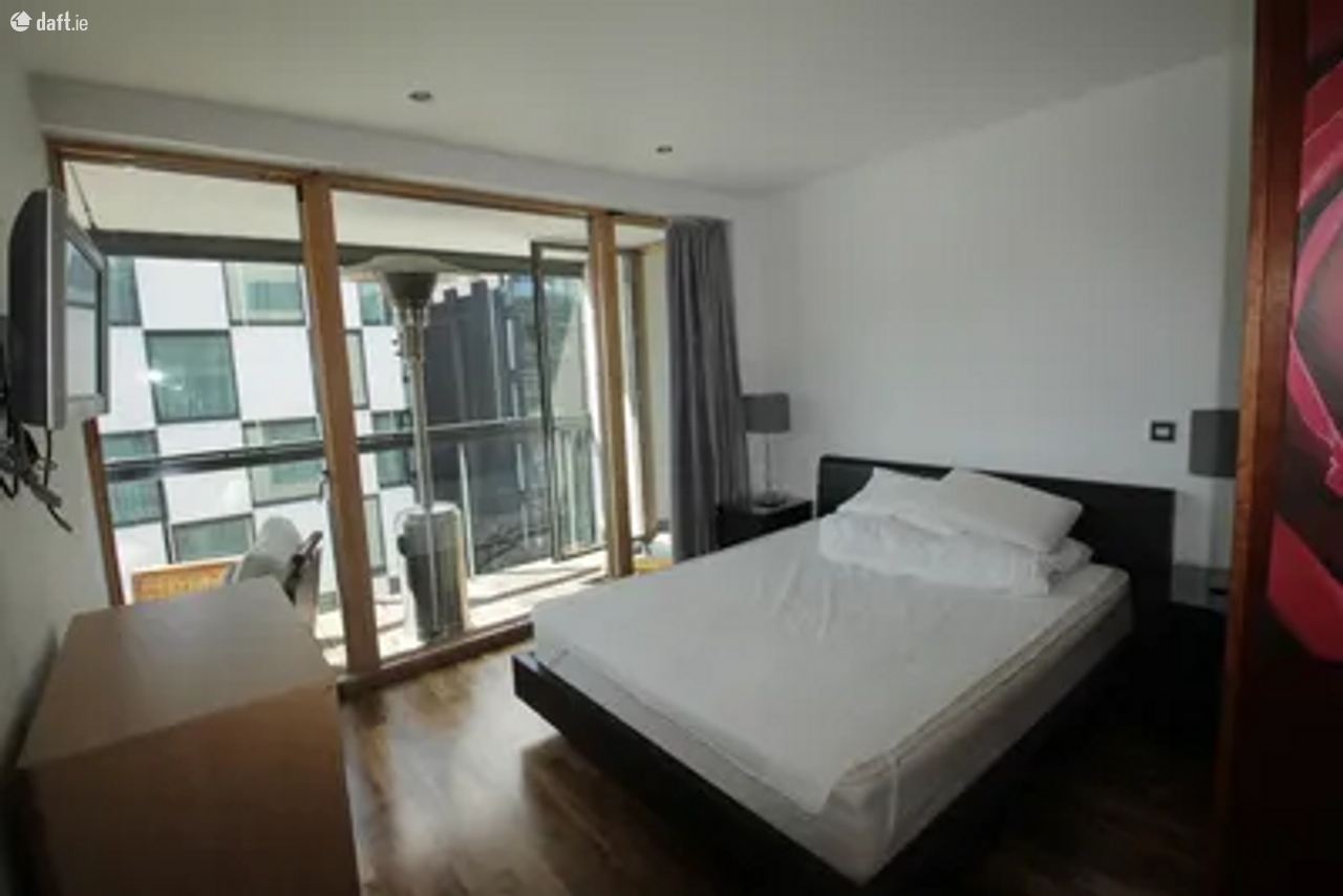 Bespoke Estate Agents are delighted to offer this modern 2 double bedroom, 2 bathroom spacious apartment, ideally located in Dublin’s Grand Canal Dock. The area is home to a host of the leading Tech and Financial Services companies in the city as well as a range of restaurants and bars. It is within walking distance to Facebook (150 metres) and Google (650 metres). The property has wooden flooring throughout, a modern kitchen with full amenities and a spacious living area consisting of a living/dining room. Two large bedrooms (one en suite) have access out onto the balcony with views over Grand Canal Square.