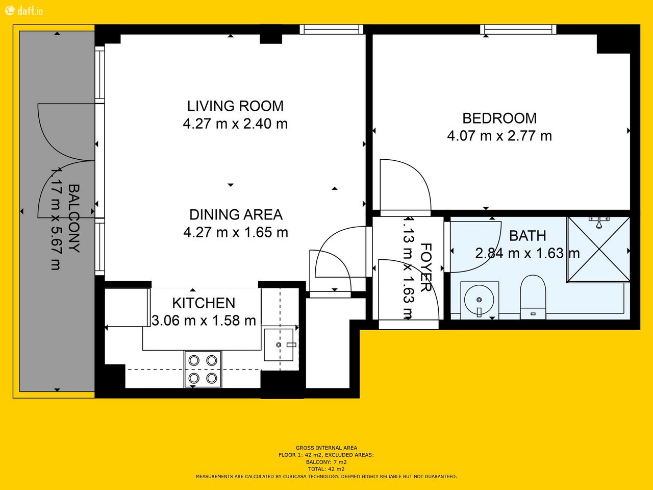 The large balcony offers stunning views over Dublin skyline. The property comprises of a spacious open plan living room flooded with natural light, a fully fitted kitchen, large double bedroom with lots of storage and a sizeable bathroom with skylight.