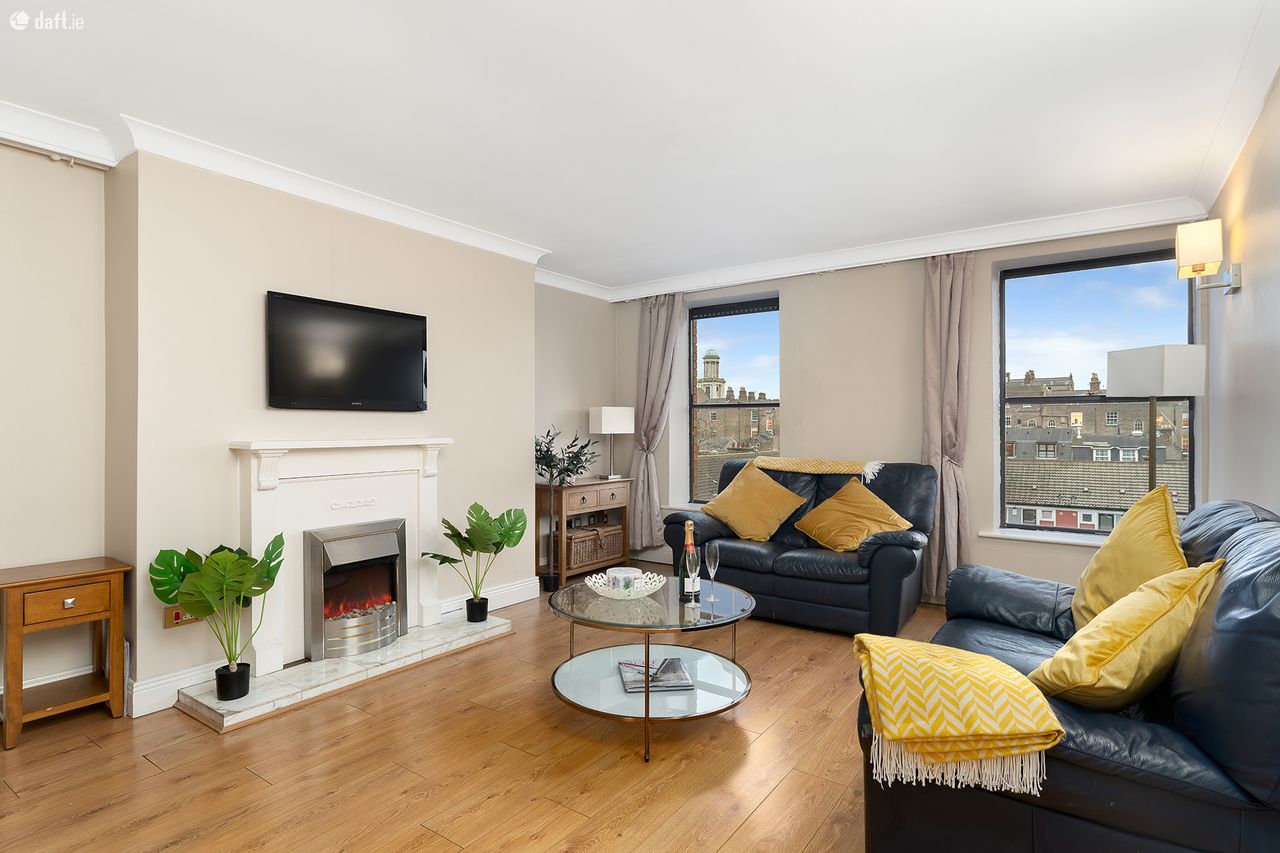 This 74m sq apartment comprises of a good sized entrance hallway with plenty of storage, an open kitchen and dining room with all mod cons, leading to a light filled living room with ornate fire place and views over South Dublin and the mountains in the distance. Off the hallway is a large main bathroom, two double bedrooms with south facing views, one with en suite and plenty of storage in both. Allocated parking to the rear, secure access to the building and a lift are some of the features in the development.